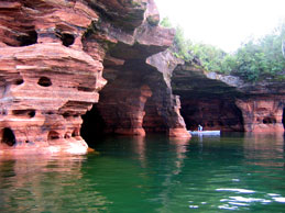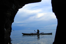 Laundry, mowing, few visits. Kayakers from campsite in A.M 2 boats from Methodist camp, but only 4 came ashore. Strong winds from west all day. After 5:30 we were getting ready to kayak sea caves when 7 campers showed up from South landing. We toured them and while they picnicked and frizbeed in back yard. We did our sea cave visit. As soon as we got out there a thunderstorm was blowing in. A sailboat was high-tailing it and pointed out storm clouds. Lightning was hitting about 15-20 miles north and NW. We came in and changed out of wetsuits and walked to west landing to watch. We got only a little damp. Probably less than 0.1 inch rain. Around 8:00 listened to rescue operation: 33 people were kayaking to see caves presumably a girl scout group. Some apparently tipped and